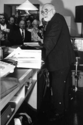 Die Alpenvereinslegende Helmut Zebhauser während der Ausstellung in München!