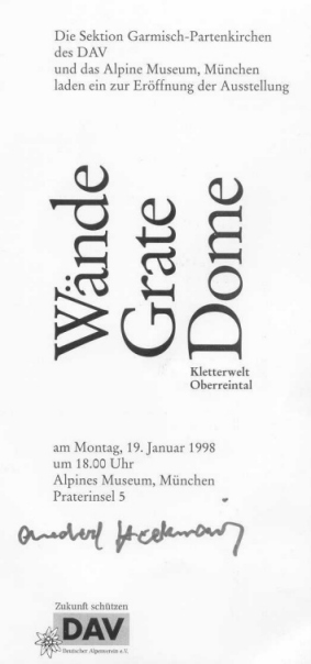 Ein Gast hat sich die persönlich ausgestellte Einladungskarte von keinem geringeren als von Anderl Heckmair unterschreiben lassen...